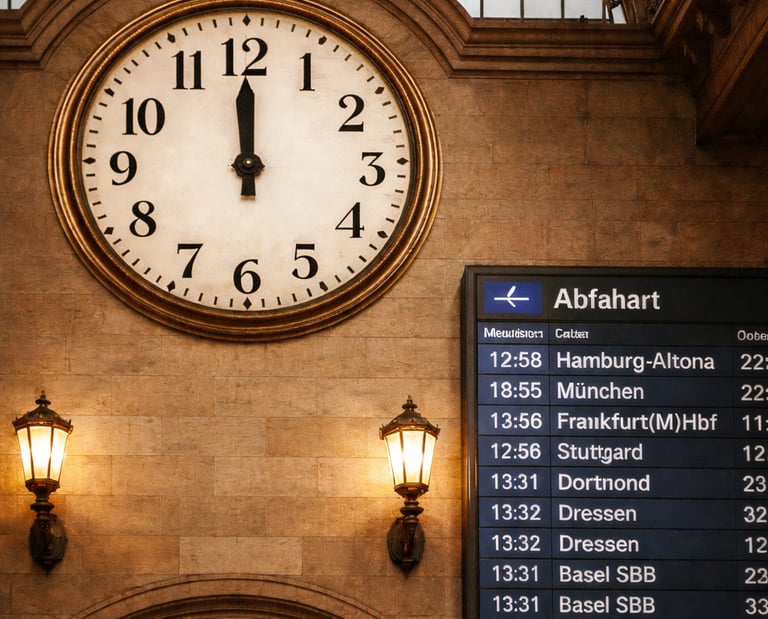 ...Часы на электронном табло вокзала переключились на 12:00. Хрипло пролаяло что-то вокзальное радио на непривычном, хотя и уже чуть-чуть понятном языке. Всё-таки до чего же похожи эти громкоговорители во всех странах.
