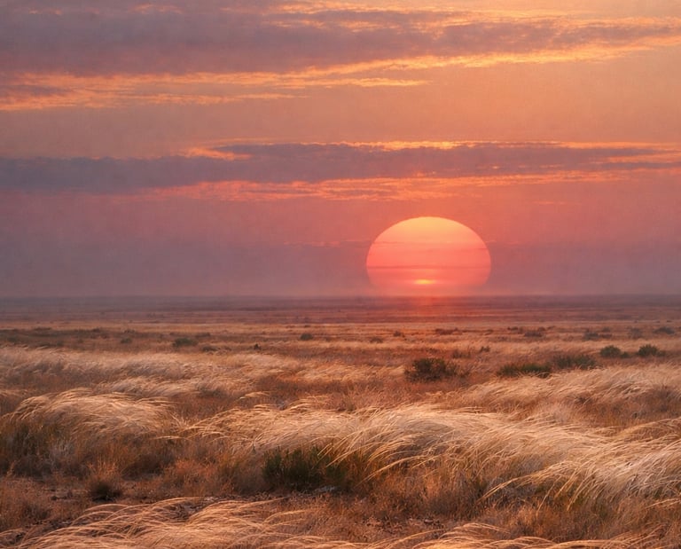 ...Багряно-розовый диск уже почти полностью опустился за горизонт, и на посеревшем небе проступили слабые очертания нарождающегося месяца.